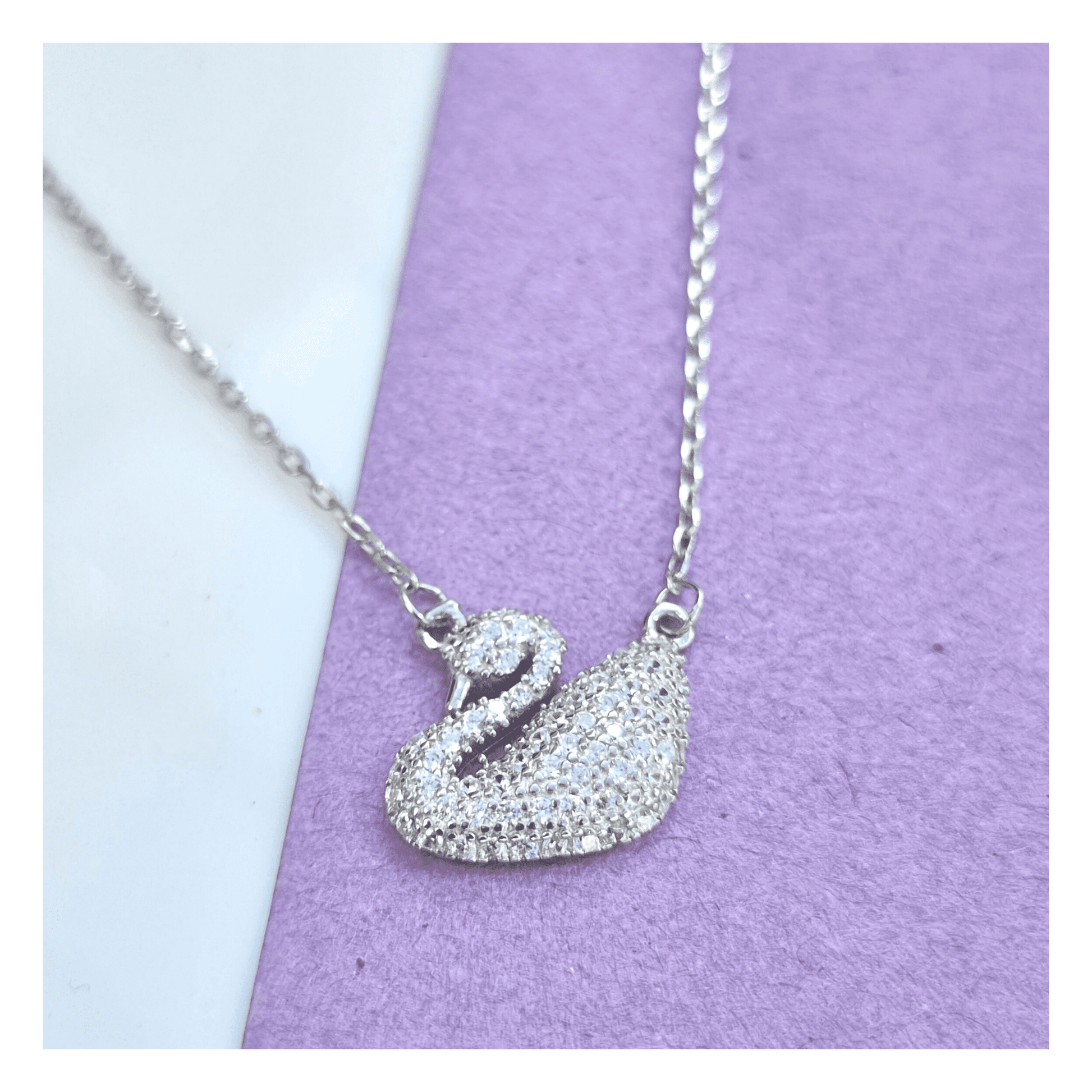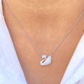 This elegant and unique Silver White Swarovski Necklace is perfect for gifts. The delicate necklace features double strands of silver, embellished with white cubic zirconiums and Swarovski swan designs. This statement piece can be worn every day or dressed up for a special occasion.