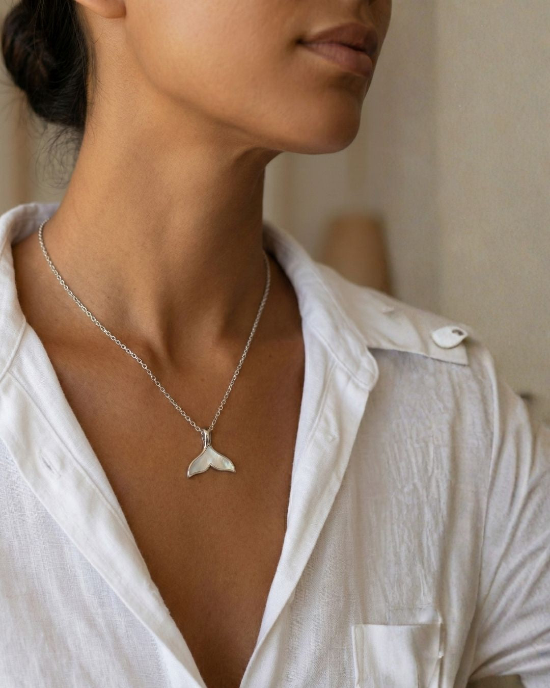 Fish tail MOP necklace is a classic, elegant, and beautiful piece of jewelry. This pendant necklace is the perfect accessory for your formal, semi-formal, or even casual attire. It's a perfect gift for birthdays, holidays, and special occasions that will be loved by everyone.